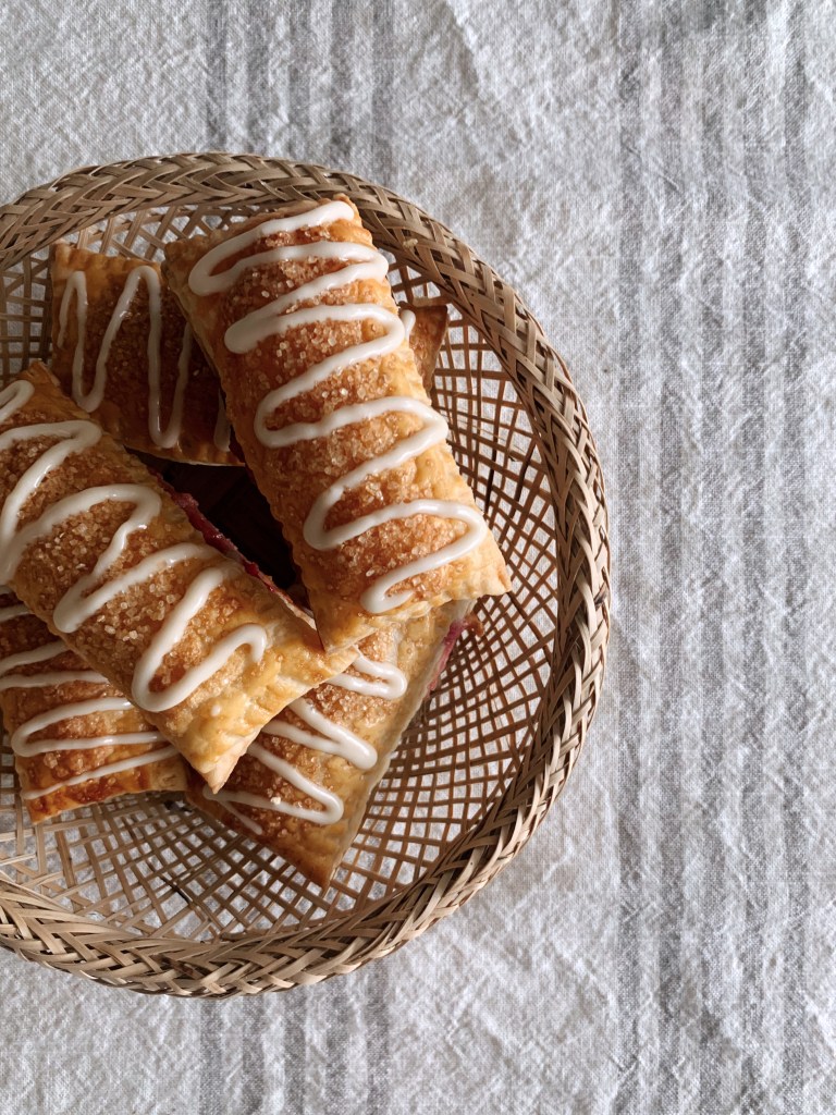 On a sheet pan lined with parchment paper, place half of the puff pastry rectangles at least 1 1/2 to 2in apart. Pipe a rectangular boarder using the cream cheese mixture, leaving 1/2in boarder. Place a spoonful of jam in middle of cream cheese outline. Repeat with first half of puff pastry rectangles.